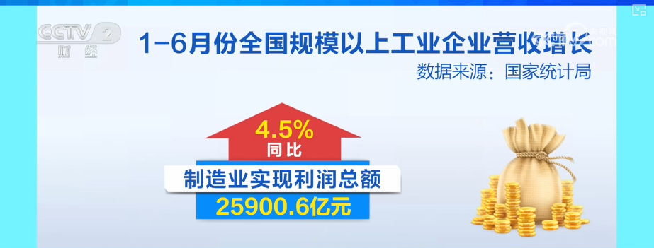 1—6月份,規(guī)模以上工業(yè)企業(yè)實現(xiàn)營業(yè)收入66.78萬億元,同比增長2.5%。制造業(yè)實現(xiàn)利潤總額25900.6億元,同比增長4.5%。