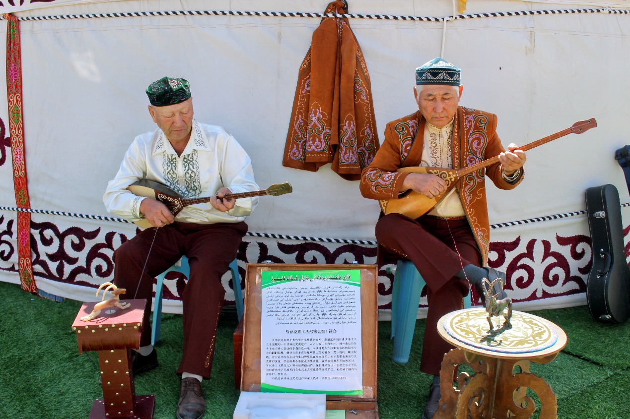 彩虹布拉克的氈房外有非遺沃爾鐵克的技藝表演,采訪團(tuán)被“會(huì)跳舞的小山羊”所吸引。非遺沃爾鐵克代表性傳承人賽里克·合德?tīng)柮榻B到,“沃爾鐵克”在哈薩克語(yǔ)中是“領(lǐng)頭羊”的意思,哈薩克族在與自然交往的過(guò)程中度過(guò)游牧?xí)r代,“沃爾鐵克”不僅是小孩子解悶的兒時(shí)玩具,也是代代相傳的精神文明。伴隨著冬不拉的彈奏,撥弦的手牽動(dòng)連著“小山羊”的線,控制著它的跳躍姿勢(shì),模仿巖羊在懸崖峭壁上行走奔跑。