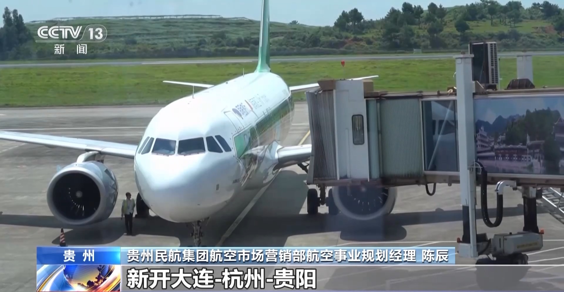 貴州民航集團航空市場營銷部航空事業(yè)規(guī)劃經(jīng)理 陳辰:針對暑期旅游旺季,聯(lián)合多家航空公司,新開大連-杭州-貴陽、鄭州-達州-貴陽、沈陽-貴陽等航線,其中大連-杭州-貴陽航線暑運期間客座率超90%。