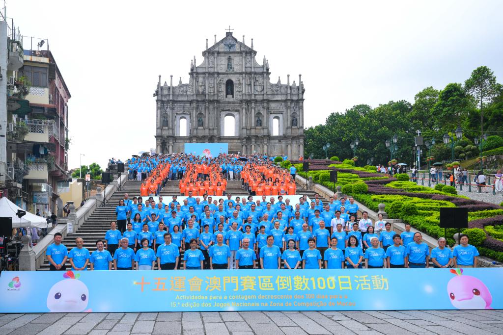 這是8月1日在澳門拍攝的第十五屆全國運動會倒計時100天慶?;顒蝇F場。新華社發(fā)(張金加攝)