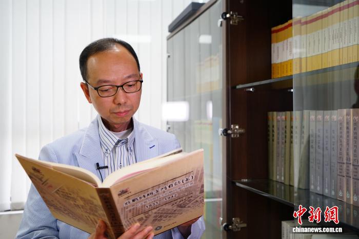 7月24日,澳門理工大學人文及社會科學學院院長、澳門口述歷史協(xié)會會長林發(fā)欽翻閱《抗戰(zhàn)時期澳門日志(上)》。 中新社記者 鄭嘉偉 攝