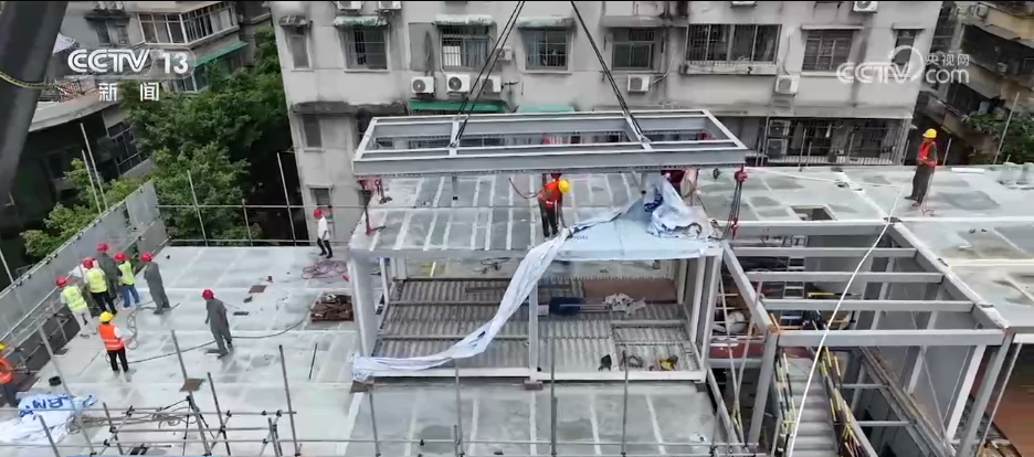 在廣東廣州越秀區(qū)洪慶坊社區(qū),一處名為小石集的連片危舊房屋改造項目正在進行鋼構(gòu)模塊吊裝,該項目涉及17棟建于上世紀60—80年代的低矮老舊建筑,原建筑多為磚木結(jié)構(gòu),房屋本體老化嚴重亟待改造。社區(qū)業(yè)主表示,小區(qū)改造之前非常破舊,房屋漏水,各方面條件較差,有這樣一個小區(qū)改造計劃之后,作為當?shù)氐木用穸挤浅F谂危谕^(qū)改造能夠提高社區(qū)居民生活質(zhì)量。