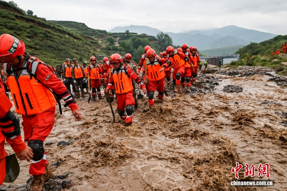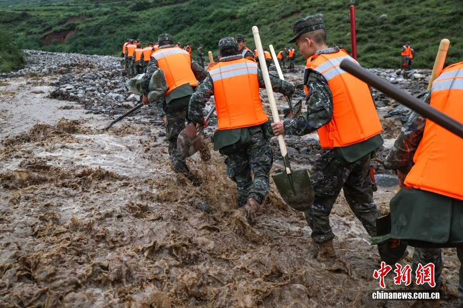 截至8日晚,武警甘肅總隊投入396名兵力開展道路清淤、人員搜救、搬運物資等救援行動,共轉(zhuǎn)移群眾171人、搜救被困群眾5人、救治受傷群眾2人、清理危房6處、轉(zhuǎn)移受損車輛12輛,累計清理淤泥、山石700余方,搜索河道6公里、搶通道路2300米。圖為8月8日,武警甘肅總隊機動支隊官兵挺進(jìn)災(zāi)區(qū)甘肅省蘭州市榆中縣馬坡鄉(xiāng)舊莊溝村展開救援。劉昆 攝