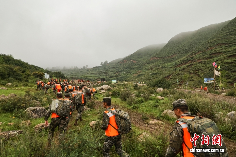 8月8日,武警甘肅總隊機動支隊官兵在甘肅省蘭州市榆中縣馬坡鄉(xiāng)舊莊溝村展開救援。劉昆 攝