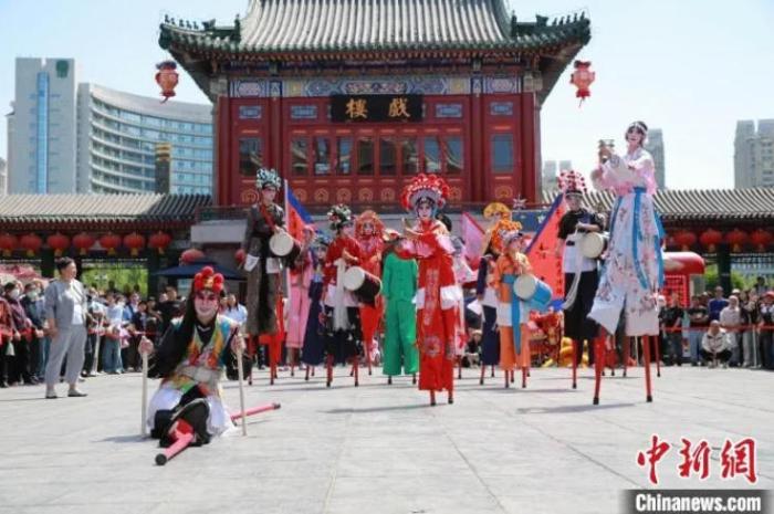 圖為“五一”假期首日,民眾在天津古文化街宮前廣場(chǎng)觀(guān)看民俗花會(huì)表演。魏進(jìn) 攝