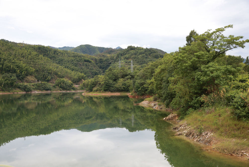 這是陳漢鄉(xiāng)的釣魚臺(tái)水庫(kù),水庫(kù)中央樹林處為“陳漢溝會(huì)師”舊址(7月22日攝)。新華社記者 肖磊濤 攝