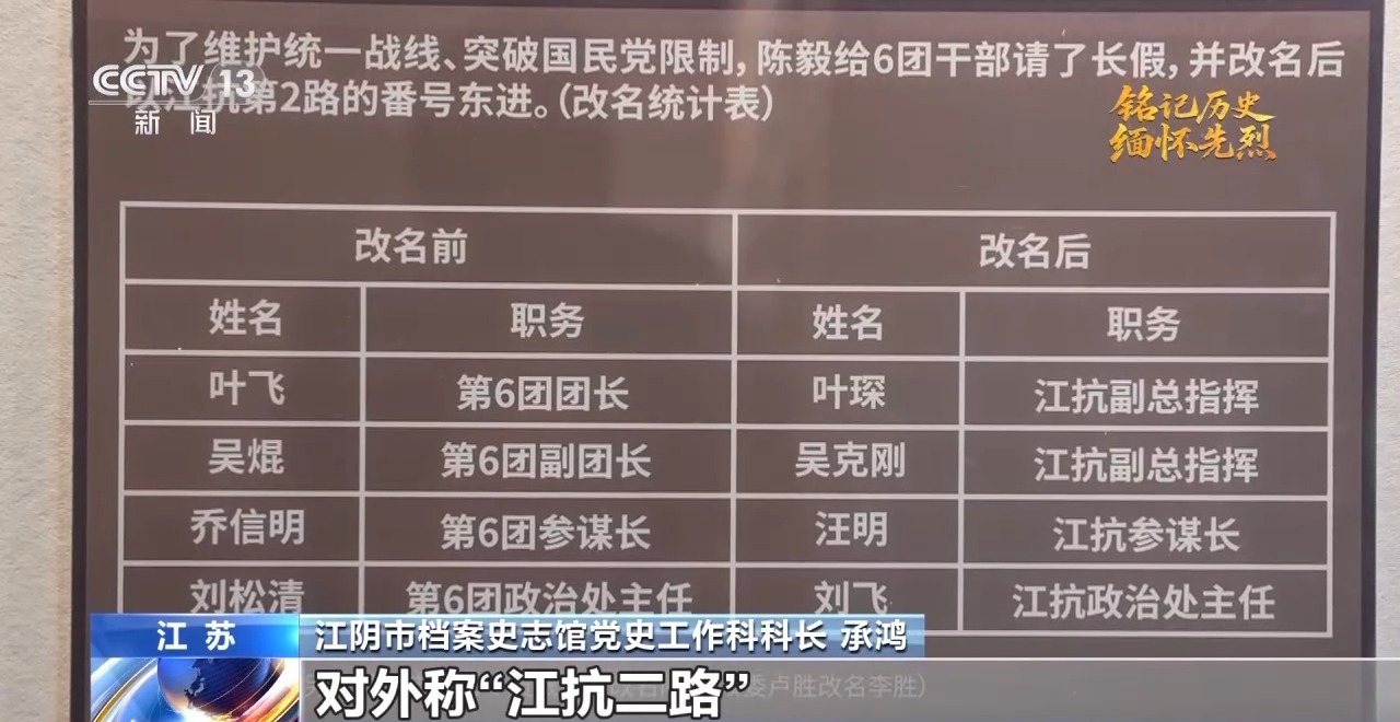 江陰市檔案史志館黨史工作科科長 承鴻:1939年4月,新四軍軍部部署六團準(zhǔn)備向東路地區(qū)發(fā)展。5月,六團在葉飛、吳焜等率領(lǐng)下,從(江蘇)茅山地區(qū)出發(fā)東進。為了防止國民黨頑固派阻撓和破壞,六團沿用“江南抗日義勇軍”的番號,以地方抗日武裝的名義,對外稱江抗二路。吳焜化名吳克剛,任副總指揮兼二路司令,隨同葉飛東進。