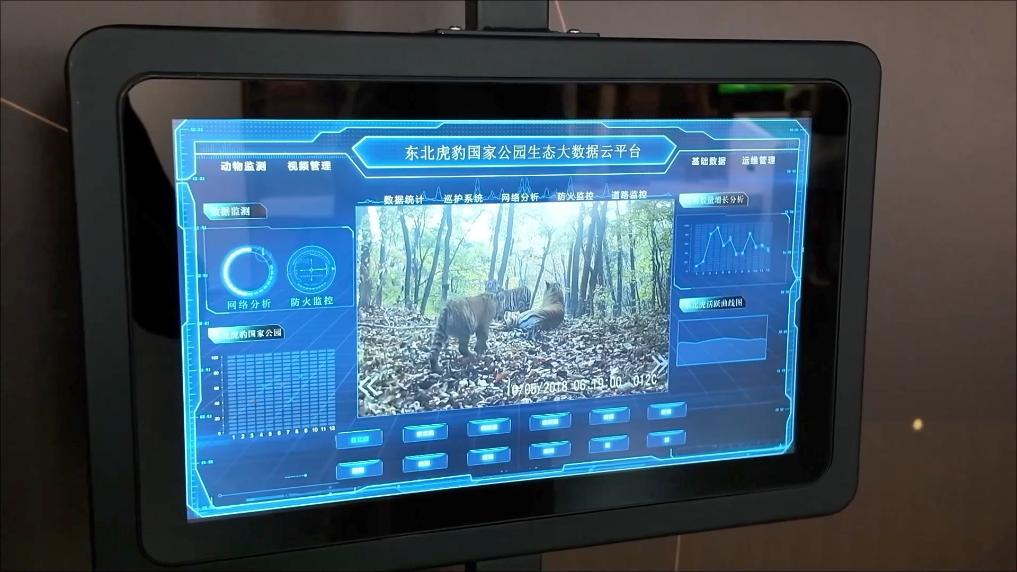 在吉林省琿春東北虎豹自然科普館,東北虎豹國家公園的“天空地一體化監(jiān)測體系”通過智能紅外相機、衛(wèi)星遙感、無人機等技術(shù),回傳野生動物活動影像。