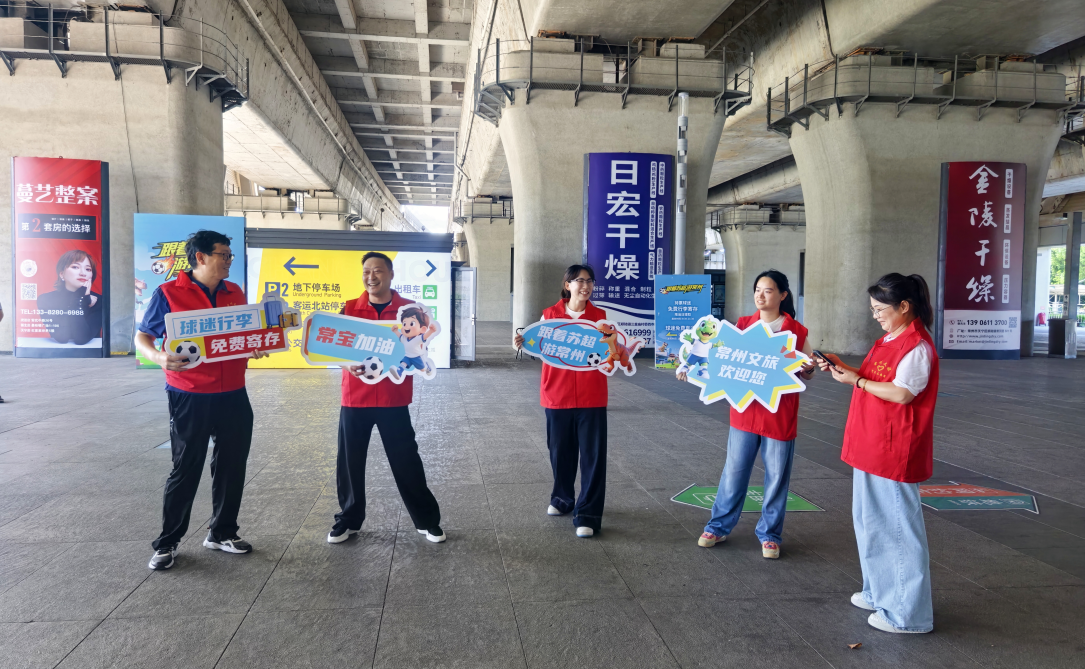 志愿者在火車站熱情迎接球迷的到來。中國經(jīng)濟網(wǎng)宋雅靜/攝