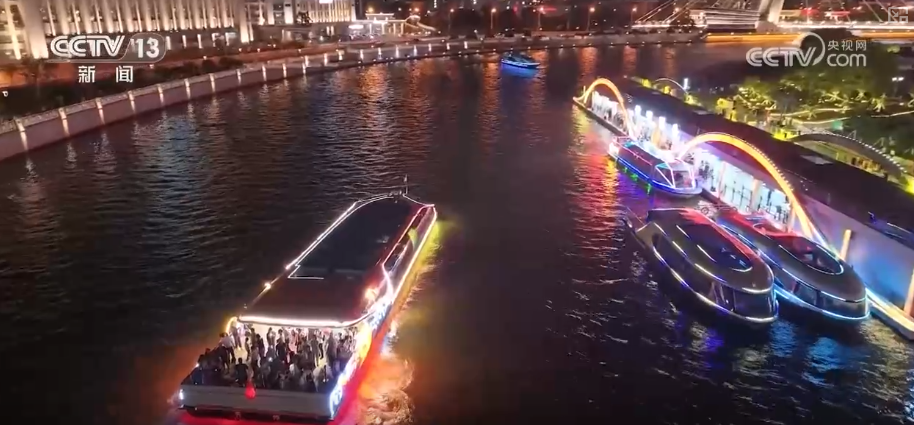 除了博物館內(nèi)的精品文物給大家?guī)砹宋幕⒀?,入夜后的海河璀璨絢麗,海河之夜美景再升級。沿線建筑、橋梁及碼頭的燈光景觀全面提升,飽覽海河兩岸美景的海河游船也打造了全新體驗。