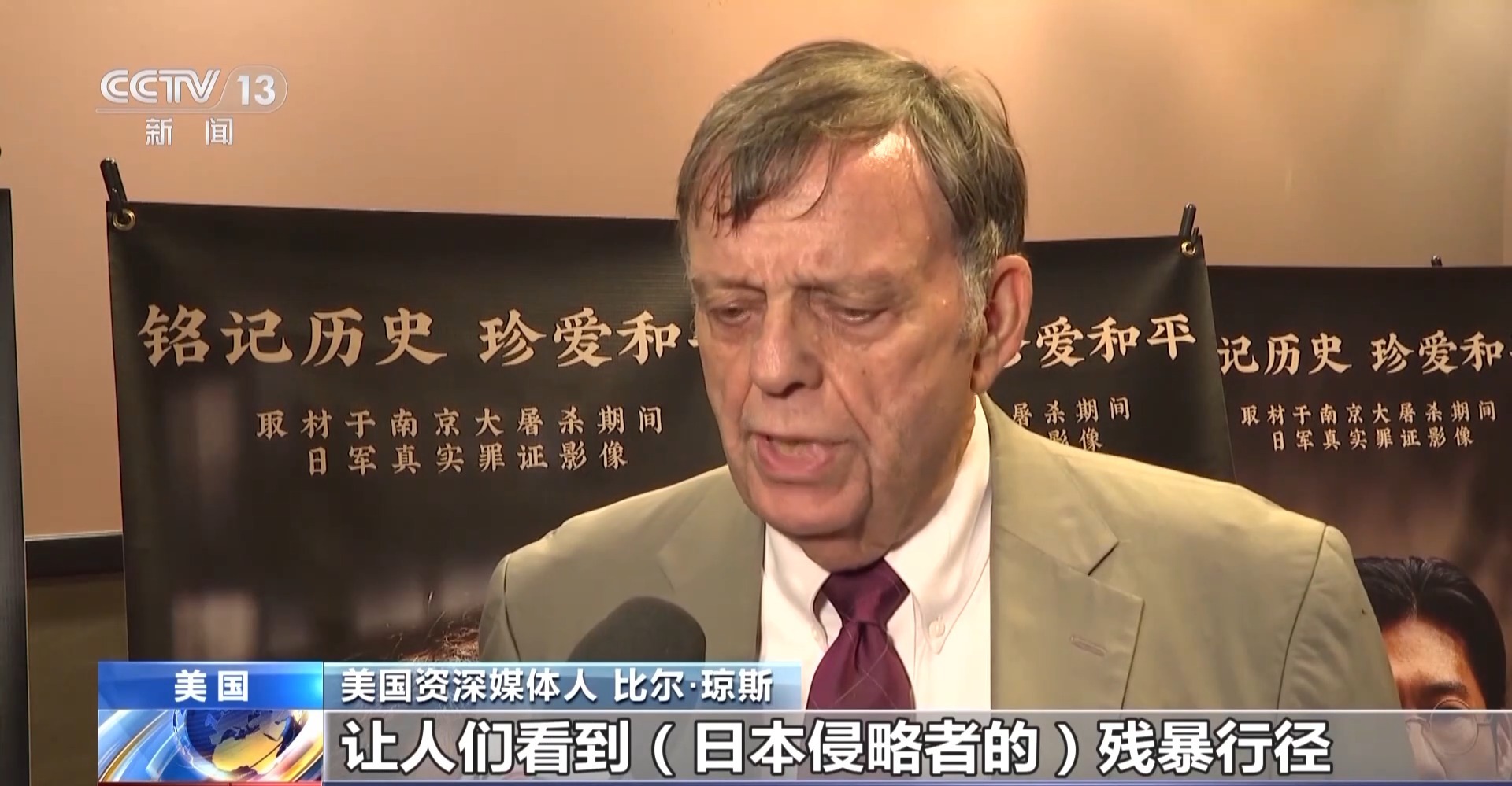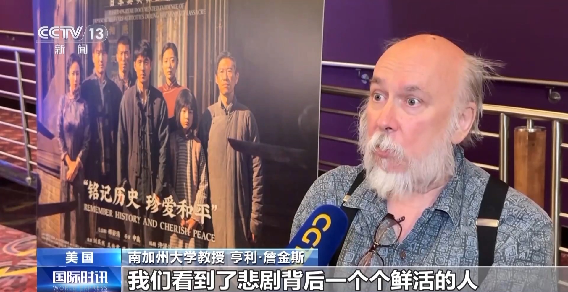 美國資深媒體人 比爾·瓊斯:我認為通過(《南京照相館》)這部電影,讓人們看到(日本侵略者的)殘暴行徑。這部電影喚醒人們的良知,讓我們思考應該向哪個方向前進。