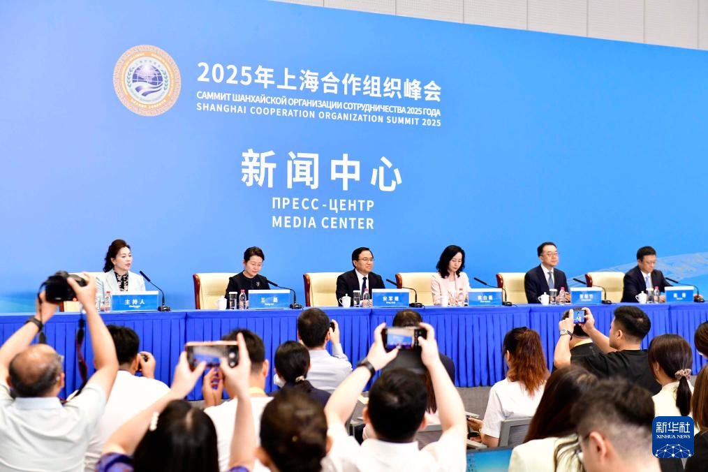 這是8月29日在2025年上海合作組織峰會(huì)新聞中心拍攝的山東專場吹風(fēng)會(huì)現(xiàn)場。