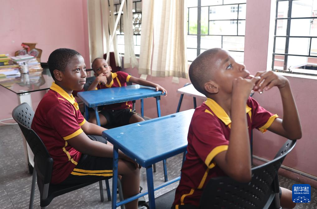9月4日,在牙買加首都金斯敦艾特特殊教育小學(xué),學(xué)生學(xué)習(xí)中文。新華社記者 李夢(mèng)馨 攝