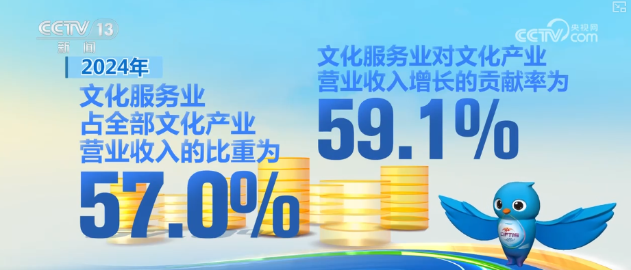 2024年,全國文化產(chǎn)業(yè)實(shí)現(xiàn)營業(yè)收入191423億元,營收規(guī)模再創(chuàng)歷史新高,比上年增長7.1%。2024年,文化服務(wù)業(yè)實(shí)現(xiàn)營業(yè)收入109134億元,比上年增長7.4%,占全部文化產(chǎn)業(yè)營業(yè)收入的比重為57.0%,文化服務(wù)業(yè)對(duì)文化產(chǎn)業(yè)營業(yè)收入增長的貢獻(xiàn)率為59.1%。