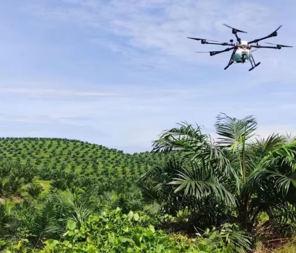 無人機在馬來西亞智慧棕櫚園識別作業(yè)。(潤建股份供圖)