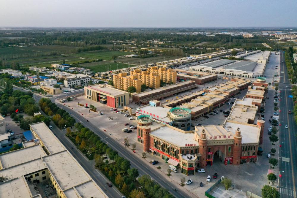 這是9月18日拍攝的新疆巴音郭楞蒙古自治州尉犁縣達(dá)西村(無(wú)人機(jī)照片)。