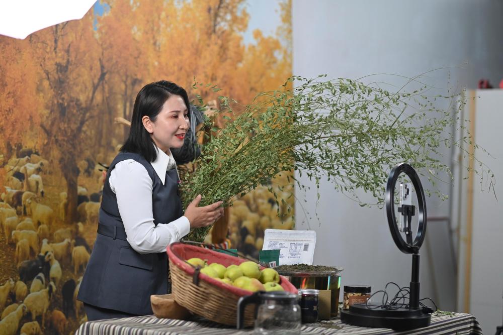9月19日,尉犁縣電商協(xié)會(huì)負(fù)責(zé)人米日阿依·阿西木在達(dá)西村的電商基地直播推介達(dá)西村農(nóng)產(chǎn)品。近年來(lái),達(dá)西村構(gòu)建“農(nóng)戶生產(chǎn)+企業(yè)加工包裝+電商銷售+物流配送”全產(chǎn)業(yè)鏈,為縣域經(jīng)濟(jì)發(fā)展培養(yǎng)孵化本土直播電商人才,促進(jìn)傳統(tǒng)產(chǎn)業(yè)轉(zhuǎn)型升級(jí)。