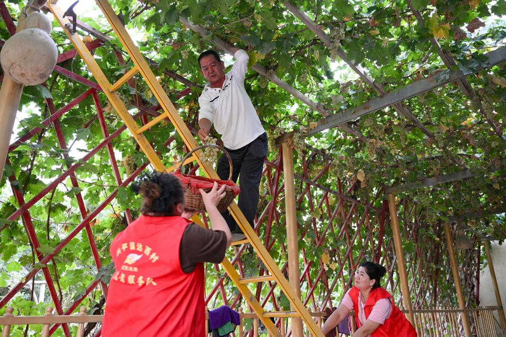 9月18日,達(dá)西村村干部入戶幫助村民采摘葡萄。近年來(lái),達(dá)西村充分挖掘房前屋后閑置土地及荒廢地塊,逐步擴(kuò)大特色林果種植面積,引導(dǎo)村民增收。