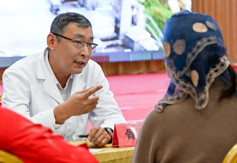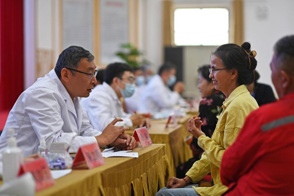 9月19日,鐵門(mén)關(guān)市人民醫(yī)院醫(yī)生在達(dá)西村為村民義診。