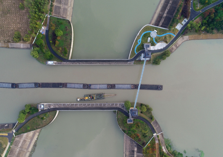 作為淮河入海水道二期工程的核心節(jié)點(diǎn),淮安水利樞紐大運(yùn)河水上立交建成便是“亞洲最大水立交”。京杭大運(yùn)河、蘇北灌溉總渠、淮河入海水道,三條載入史冊(cè)的人工水道在此交匯,“兩橫一縱”的格局間,藏著建設(shè)者們最棘手的難題?!岸诠こ桃o鄰布置,水系又密、水頭還高?!蓖鹾橛裉直葎澲鴺屑~布局,“我們先做好基坑防滲工作,再通過開挖臨時(shí)導(dǎo)航明渠來保障運(yùn)河航運(yùn),工程在緊鑼密鼓地推進(jìn)?!?/p>