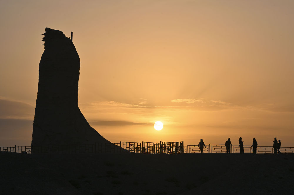 “克孜爾尕哈”意為“紅色哨卡”。夕陽下,這座漢代軍事設(shè)施的夯土墻體被映照得棱角分明,泛著淡淡的金紅色?!罢驹谶@里,仿佛看到了當(dāng)年的烽火傳訊?!币幻慰透锌卣f。