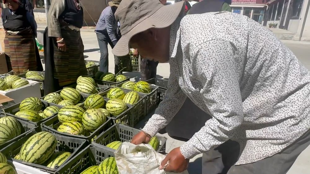 9月,在西藏日喀則市桑珠孜區(qū)年木鄉(xiāng)羅林村,曬場(chǎng)上一派繁忙景象。村民們排起隊(duì)伍,與收購(gòu)人員并肩協(xié)作,將一個(gè)個(gè)圓滾滾的大西瓜挨個(gè)過(guò)秤、裝車(chē),7000斤西瓜被一次性收購(gòu)。