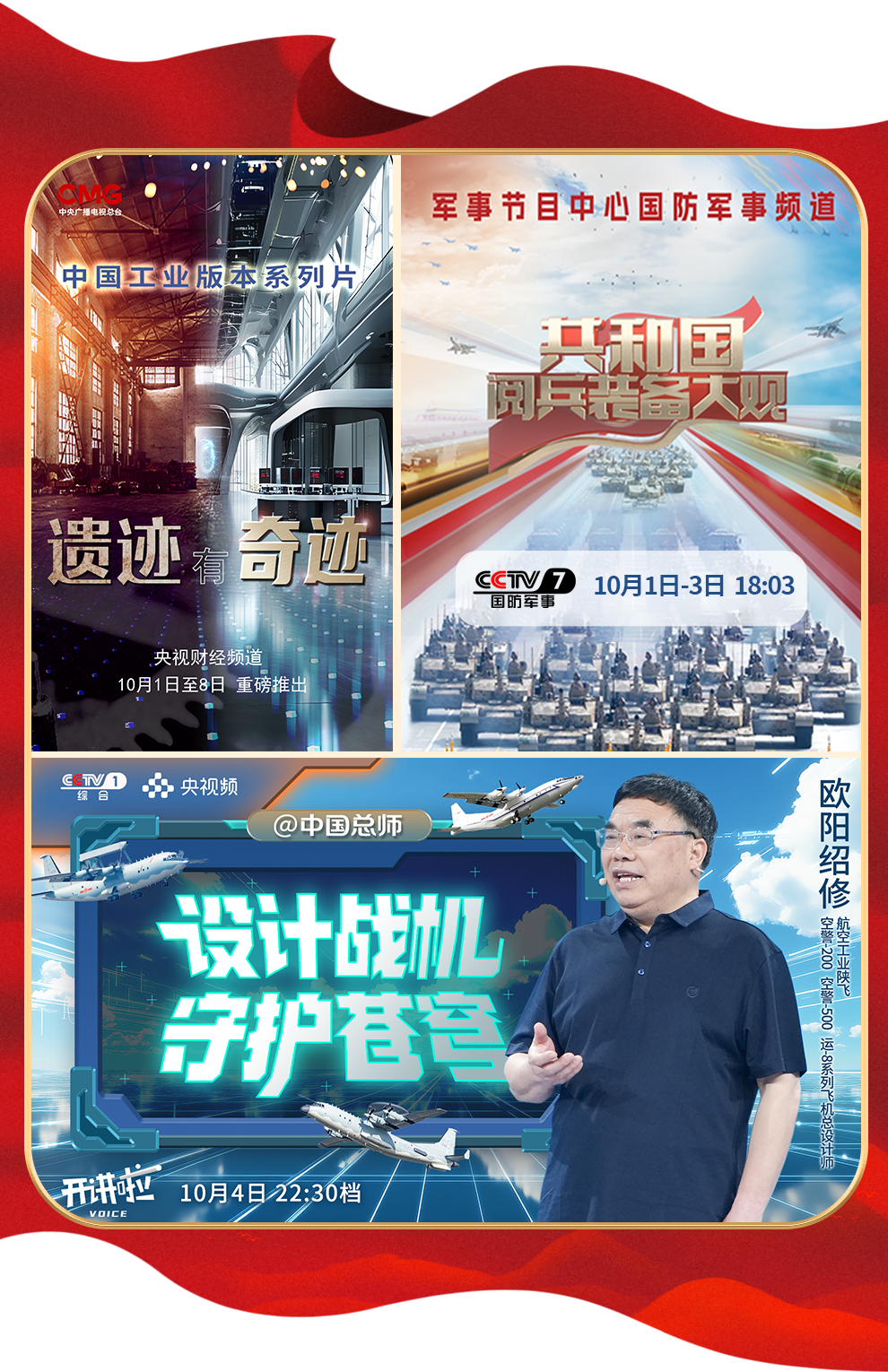 紀(jì)錄片《遺跡有奇跡》,深入探訪八個(gè)不同行業(yè)的工業(yè)遺址,展現(xiàn)中國(guó)工業(yè)發(fā)展的輝煌歷程。九三閱兵現(xiàn)場(chǎng),新型察打一體無(wú)人機(jī)、空警-500預(yù)警機(jī)等硬核裝備令人振奮,《開講啦》“@中國(guó)總師”解讀中國(guó)軍工硬核實(shí)力,系列節(jié)目《共和國(guó)閱兵裝備大觀》帶你在鋼鐵洪流的轟鳴聲中見證軍工裝備的迭代升級(jí),展示新時(shí)代中國(guó)科技創(chuàng)新帶來(lái)的大國(guó)力量!向前進(jìn),向前進(jìn),我們有信心、有底氣!
