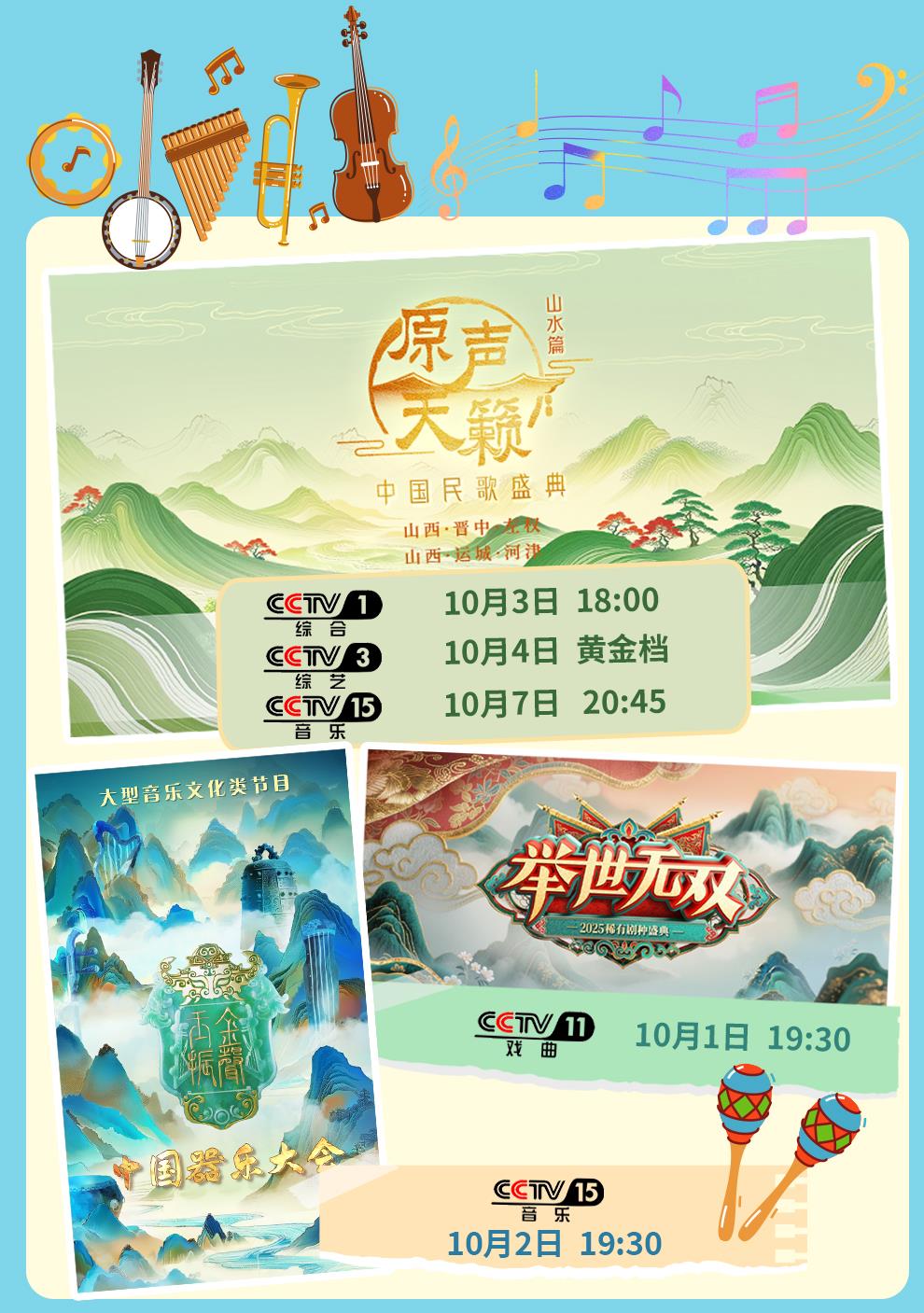 文藝節(jié)目,出新出彩!輕體量小鎮(zhèn)音樂(lè)會(huì)、稻田音樂(lè)會(huì)、河灘音樂(lè)會(huì),《原聲天籟-中國(guó)民歌盛典》用民歌描繪山水間幸福畫卷。《金聲玉振——中國(guó)器樂(lè)大會(huì)》將賈湖骨笛、箜篌等古樂(lè)器與當(dāng)代編曲結(jié)合,奇妙組合帶來(lái)全新聽覺(jué)體驗(yàn)。《舉世無(wú)雙 2025稀有劇種盛典》匯集雁北耍孩兒、湖劇、阿宮腔等三十余個(gè)稀有劇種,盡展中華戲曲百花園獨(dú)特風(fēng)采。