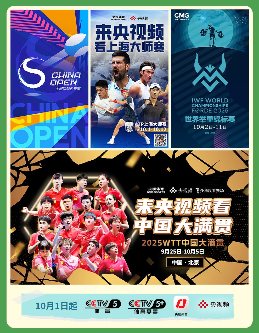 精彩賽事,激情無(wú)限!《2025年中國(guó)網(wǎng)球公開賽》《2025年世乒聯(lián)大滿貫賽(中國(guó)站)》《2025年ATP1000男子網(wǎng)球大師賽(上海賽)》《2025年世界舉重錦標(biāo)賽》等黃金賽事接連開賽,讓體育迷暢享運(yùn)動(dòng)的無(wú)窮魅力。