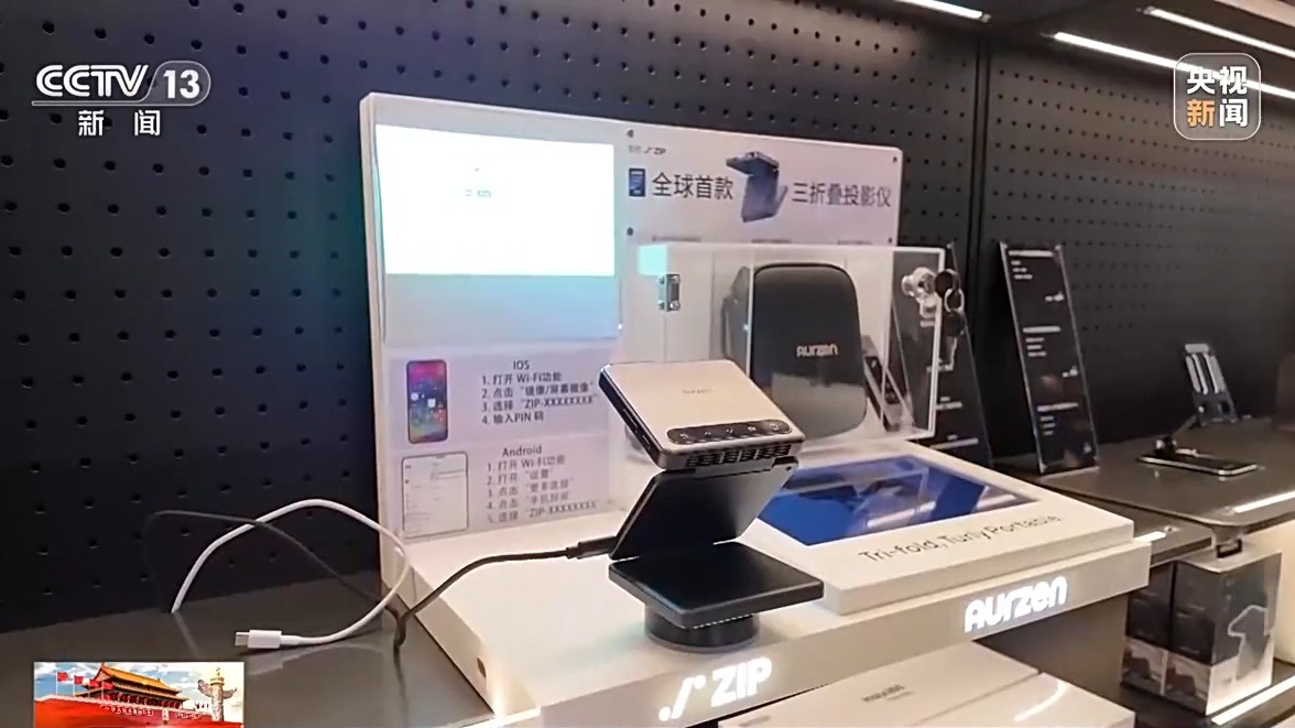 像這家店內(nèi)展示的三折疊投影儀、無弦吉他、教育機(jī)器人等多門類新品,覆蓋了工作、生活、娛樂等全場景。記者發(fā)現(xiàn),店內(nèi)推出的大量AI新品,不僅功能更強(qiáng)大,操作起來也更加簡單,讓老百姓能夠更方便地使用人工智能技術(shù)。