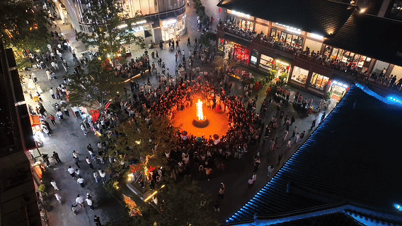 中秋節(jié)來臨之際,位于安徽省阜陽市潁州區(qū)的雙清灣水街熱鬧非凡,一場延續(xù)近800年的中秋火把祈福習俗煥新登場,連串的火把依次亮起,如火龍蜿蜒穿行,吸引近5000名市民打卡。