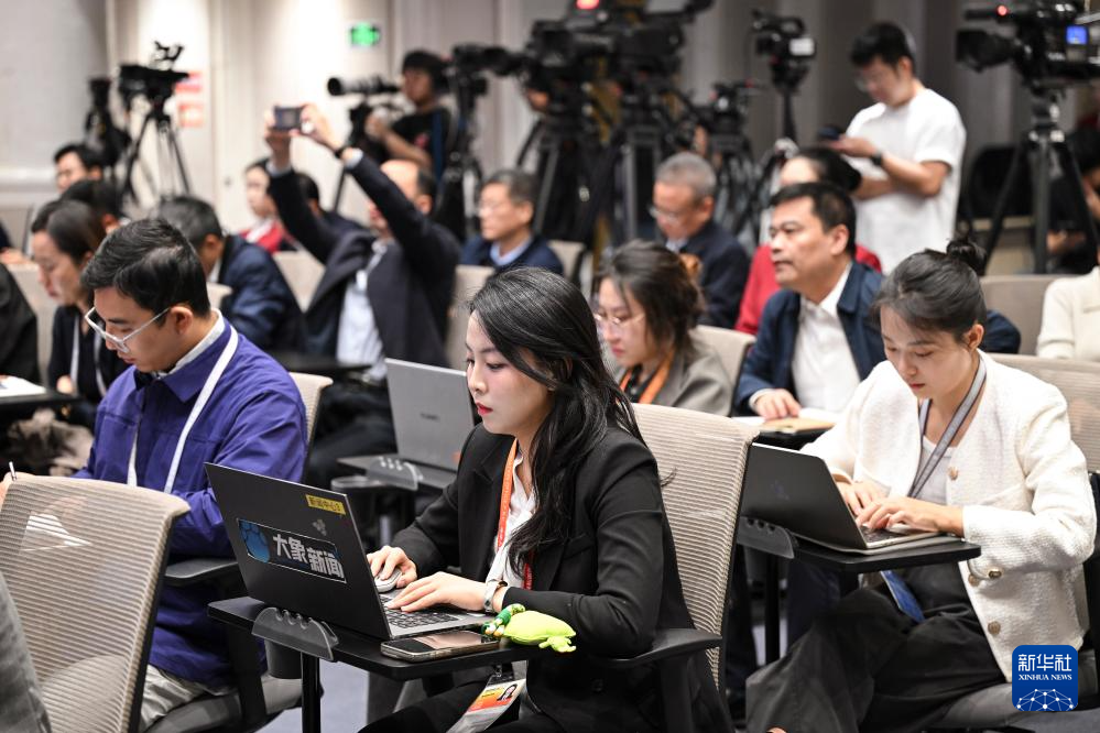 10月14日,國務院新聞辦公室在北京舉行“高質(zhì)量完成‘十四五’規(guī)劃”系列主題新聞發(fā)布會,國家發(fā)展改革委黨組成員、國家糧食和物資儲備局局長劉煥鑫,國家糧食和物資儲備局副局長錢毅、副局長秦玉云介紹“十四五”時期糧食流通改革發(fā)展成效,并答記者問。這是記者在現(xiàn)場工作。新華社記者 陳曄華 攝