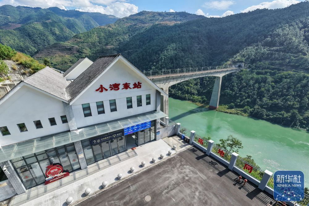 ↑ 這是位于瀾滄江江畔的小灣東站(10月30日攝,無(wú)人機(jī)照片)。