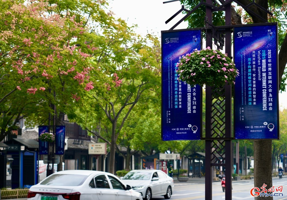 2025年11月5日,浙江烏鎮(zhèn),隨處可見(jiàn)的烏鎮(zhèn)峰會(huì)元素。