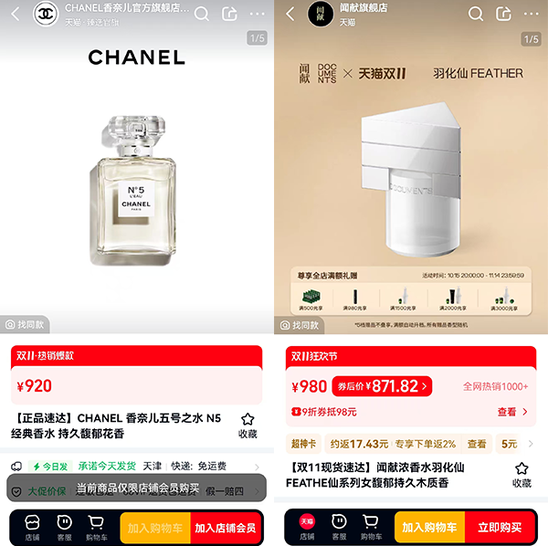 個(gè)別國(guó)貨香水價(jià)格高于國(guó)際品牌(圖片來(lái)源:天貓)