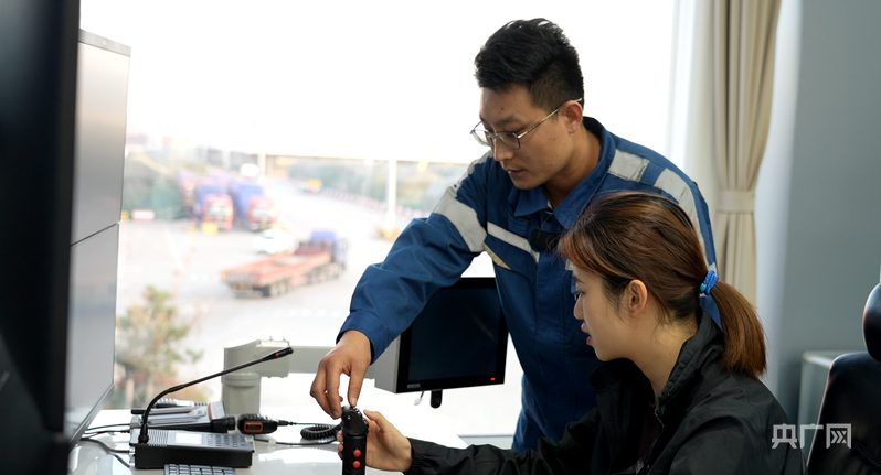 鏡頭從岸線來到西聯(lián)公司件雜貨數(shù)智中心,這里是整個(gè)碼頭的大腦。落地窗外,“中遠(yuǎn)海運(yùn)長青”輪穩(wěn)穩(wěn)靠泊。數(shù)智中心內(nèi),工作人員對(duì)著電腦屏幕進(jìn)行操控,上面顯示著碼頭各處的實(shí)時(shí)畫面,有的電腦前還有方向盤,電腦桌下還有剎車、油門?!斑@里是操控IGV的,通俗來說就是自動(dòng)駕駛的運(yùn)輸車,在這個(gè)操作臺(tái)上,就可以實(shí)現(xiàn)遠(yuǎn)程監(jiān)控,有點(diǎn)像打游戲?!鼻鄭u港西聯(lián)公司操作部副經(jīng)理孫長杰介紹。