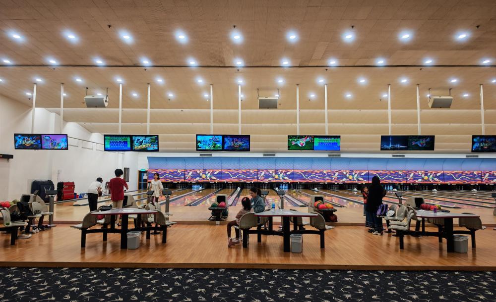 20205年11月15日,市民在澳門東亞運(yùn)動(dòng)會(huì)體育館中打保齡球。新華社記者 孫凡越 攝