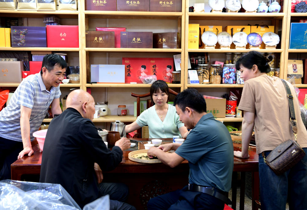 在福建省安溪縣的中國(guó)茶都茶葉市場(chǎng),茶商在市場(chǎng)店鋪里揀選鐵觀音毛茶(2024年5月8日攝)。新華社記者 魏培全 攝