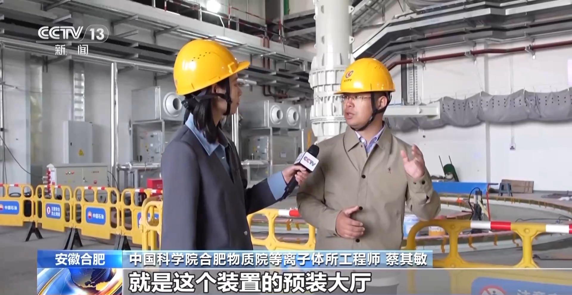 中國科學院合肥物質(zhì)院等離子體所工程師 蔡其敏:在“十四五”期間,合肥科學島的EAST(東方超環(huán))裝置上面突破了億度千秒大關,推動核聚變研究從基礎的實驗領域轉向了工程化的建設。我們現(xiàn)在所處的位置就是這個裝置的預裝大廳,目前我們是在緊鑼密鼓地建設這個園區(qū)。