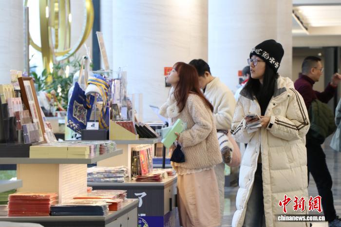11月27日,游客在新疆博物館挑選“五星出東方利中國”系列文創(chuàng)產(chǎn)品。 茍繼鵬 攝