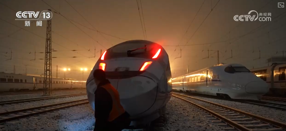 央視網(wǎng)消息:12月12日,京津冀地區(qū)迎來今冬首場大范圍降雪。為確保動車組列車在低溫環(huán)境下運(yùn)行狀態(tài)良好,國鐵北京局連夜開展防寒加溫作業(yè)。工作人員在零下5℃的環(huán)境中,為動車組啟動空調(diào)系統(tǒng),提升車廂溫度,防止車內(nèi)設(shè)備、水管等因低溫凍結(jié),保障動車組列車第二天安全正點(diǎn)出發(fā)。