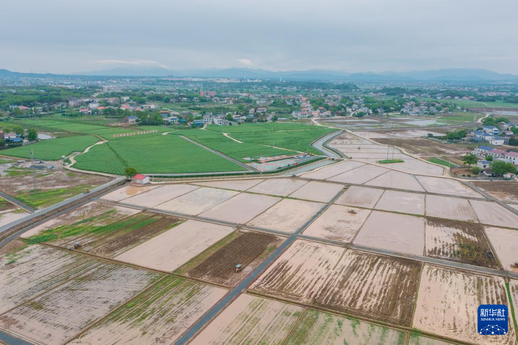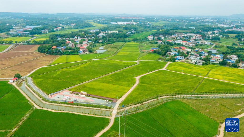 這是2024年6月19日在瀏陽市永安鎮(zhèn)豐裕村拍攝的稻田(無人機照片)。新華社發(fā)