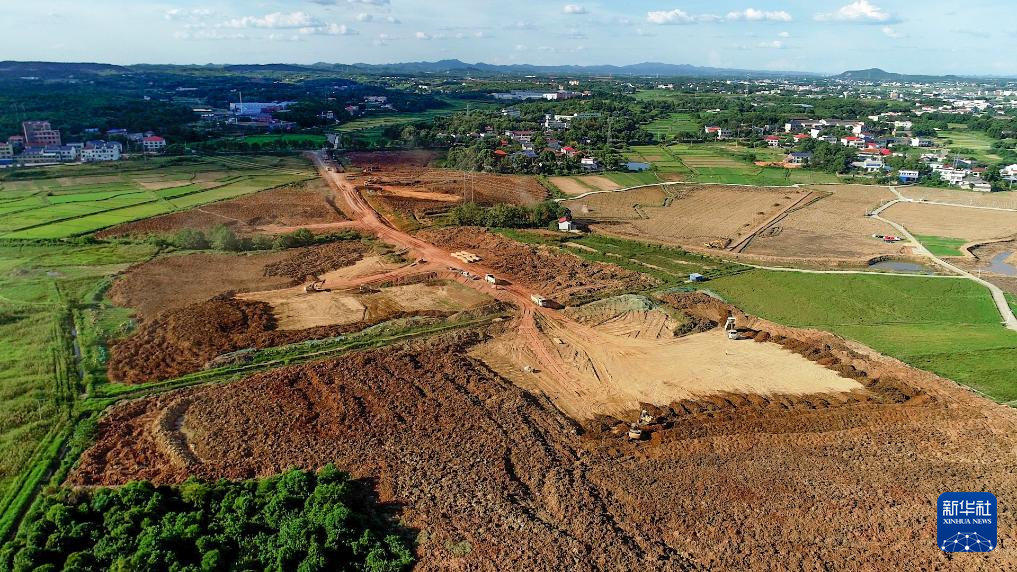 這是2022年8月31日拍攝的瀏陽市永安鎮(zhèn)豐裕村嚴(yán)格管控區(qū)地塊覆土作業(yè)現(xiàn)場(無人機照片)。新華社發(fā)(鄒禮卿 攝)