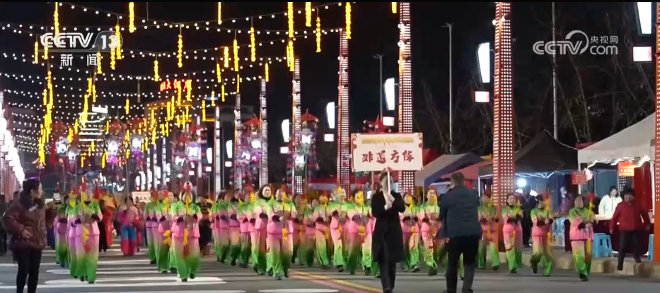 向舞臺走去的是非遺方陣從前到后分別是錢桿舞、花燈戲,以及高矮人舞這三個節(jié)目都是余慶當(dāng)?shù)氐馁F州省級非遺。每當(dāng)逢年過節(jié)的時候,當(dāng)?shù)厝罕姸紩虬缫环瑏淼浇诸^,向周圍的觀眾們送去節(jié)日的祝福。