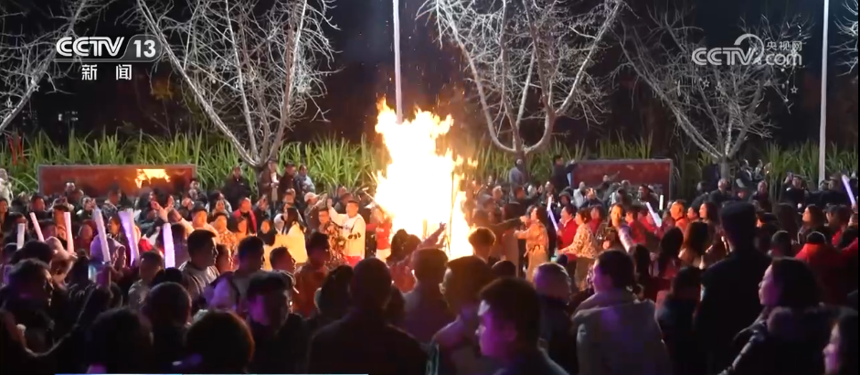 隨著絢爛的焰火騰空而起,當(dāng)晚的活動也迎來了最高潮。演員們走下舞臺,和上千名觀眾一起圍繞篝火舞蹈狂歡,滿懷憧憬迎接新年。