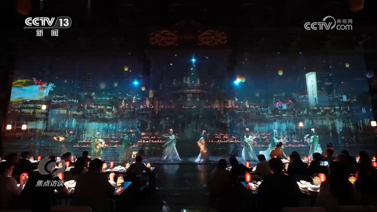 《清明上河·宋宴》是全國首個(gè)宋文化沉浸式餐秀,通過“宴席+演藝+科技”的創(chuàng)新形式,讓游客化身北宋汴京雅士,跟著宋代名人的腳步風(fēng)雅入宴。
