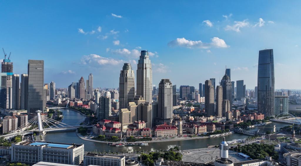 2025年7月16日無(wú)人機(jī)拍攝的天津海河沿線。新華社記者孫凡越 攝