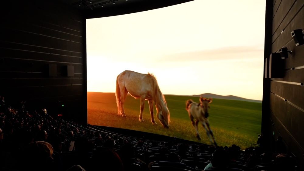 近日,全球首部生肖動物巨幕電影《馬到功成》在上??萍拣^內(nèi)巨幕影院舉行首映。該屏幕融合4K、3D、高幀率等多項技術(shù),同時也應(yīng)用了中影集團新一代的CLED透聲屏方案。