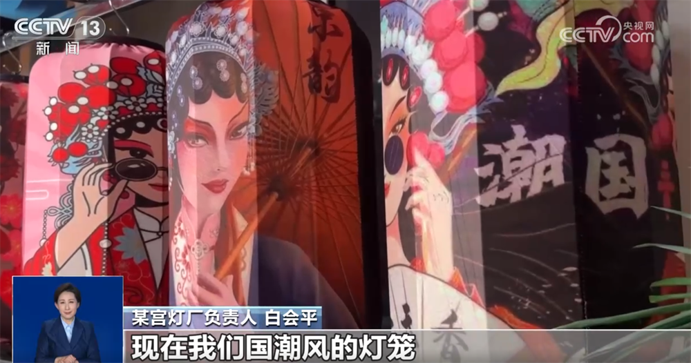 某宮燈廠負(fù)責(zé)人 白會(huì)平:通過(guò)跟大專院校合作,研發(fā)新的產(chǎn)品,每年都得有一個(gè)新的突破。現(xiàn)在我們國(guó)潮風(fēng)的燈籠特別受年輕消費(fèi)群體的喜歡。原來(lái)我們是單一的幾個(gè)品種,現(xiàn)在發(fā)展到18個(gè)大的系列、300多個(gè)品種,而且根據(jù)客戶的要求還可以量身定做。