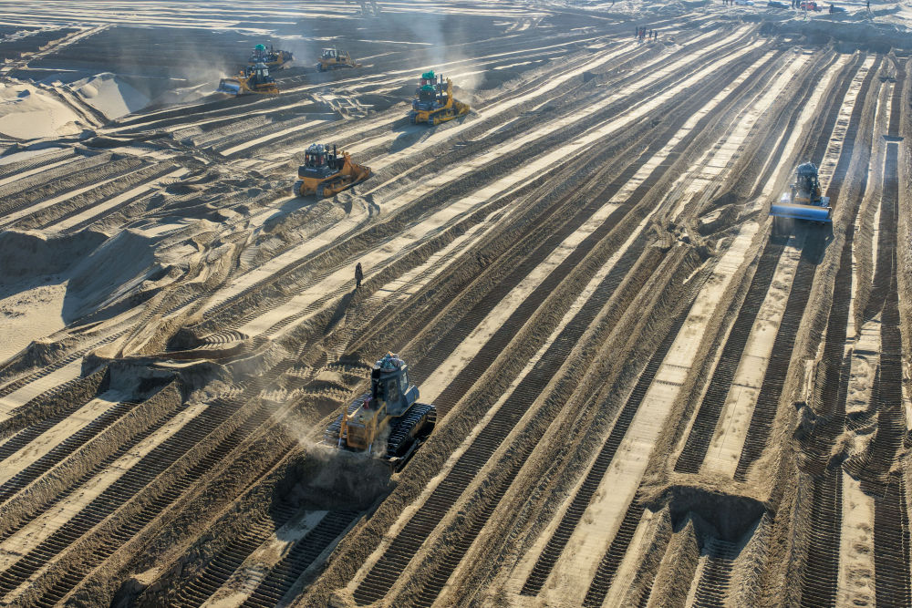 冬季的沙漠進入“休眠期”,沙塵天氣頻率降至全年最低,沙丘移動速度趨于穩(wěn)定,為大型機械平整沙地作業(yè)創(chuàng)造了穩(wěn)定條件,也是從源頭切斷春季風沙蔓延路徑的關鍵窗口期。